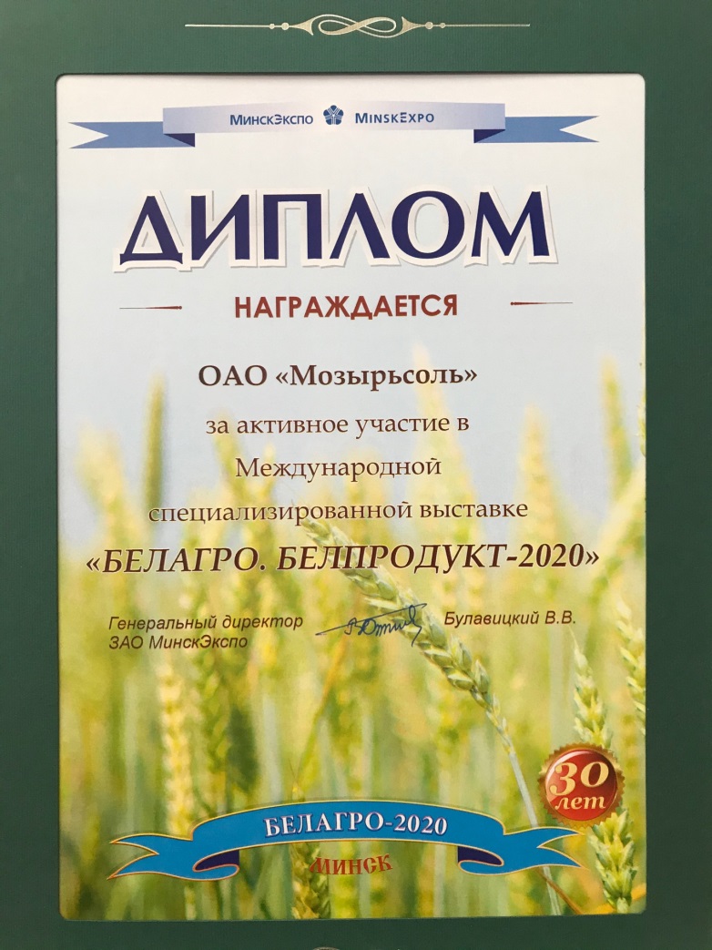 ОАО «Мозырьсоль» в очередной раз приняло участие в Международной специализированной  выставке «БЕЛАГРО-2020»