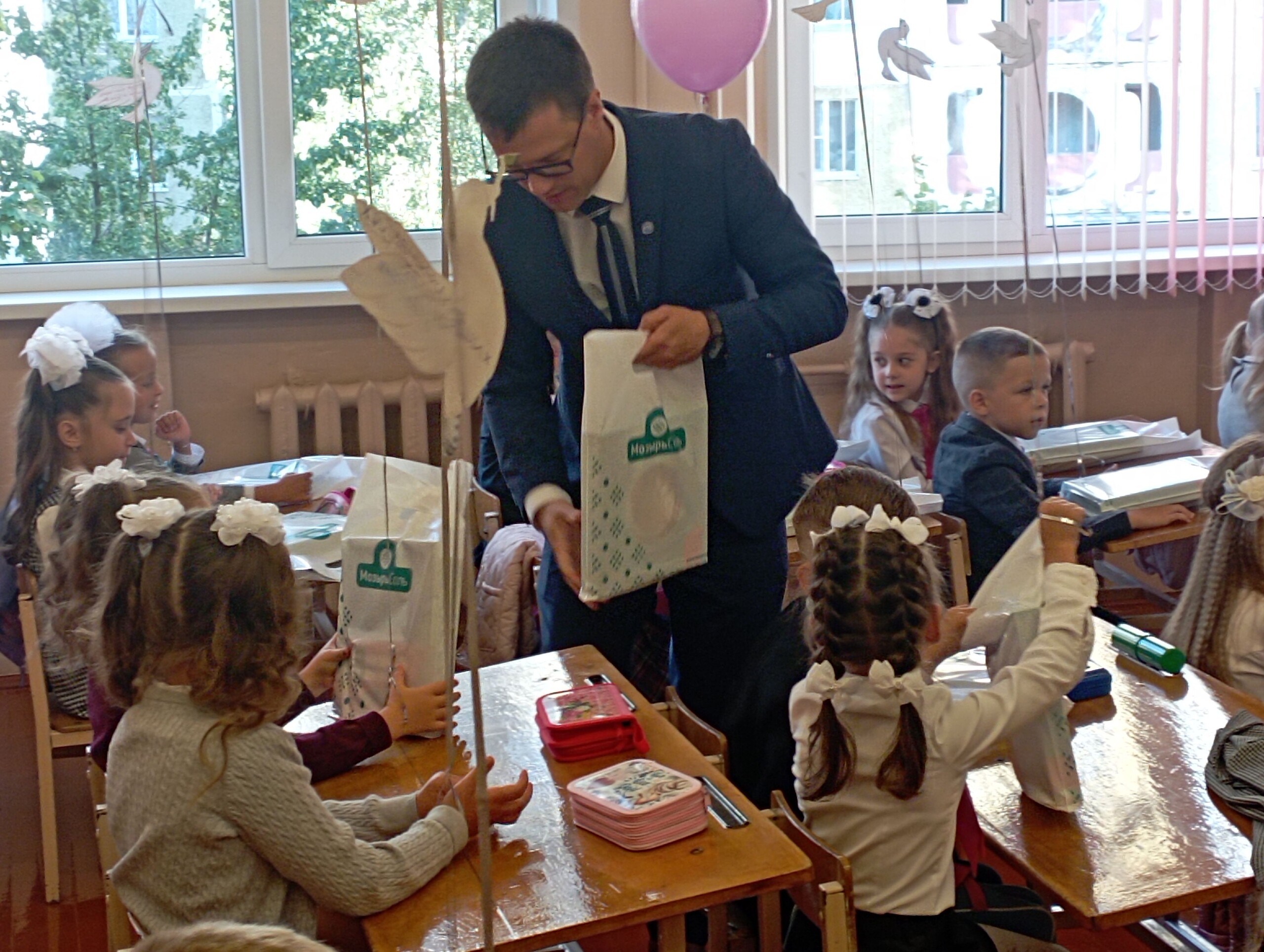 240 первоклассников отправились за знаниями в ГУО "Средняя школа №14 г.Мозыря" и ГУО ""Средняя школа №12 г.Мозыря". По традиции всем первоклассникам этих школ были вручены приятные сладкие подарки от коллектива ОАО «Мозырьсоль».