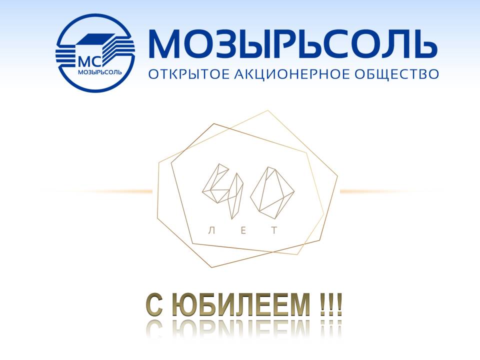 Поздравляю весь коллектив и ветеранов ОАО «Мозырьсоль» с 40-летием со дня выпуска первой продукции!
