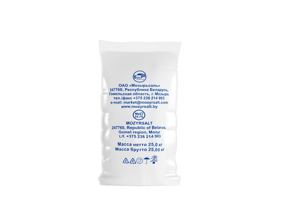 хранить при относительной влажности воздуха не более 75%. Соль упакованную в полипропиленовые, полиэтиленовые мешки (до 50 кг), в контейнеры (до 1500 кг) и сформированные в транспортные пакеты при помощи полимерной пленки, предотвращающей воздействие влаги и прямых солнечных лучей, для краткосрочного (не более 6 месяцев) хранения размещают на открытых площадках.